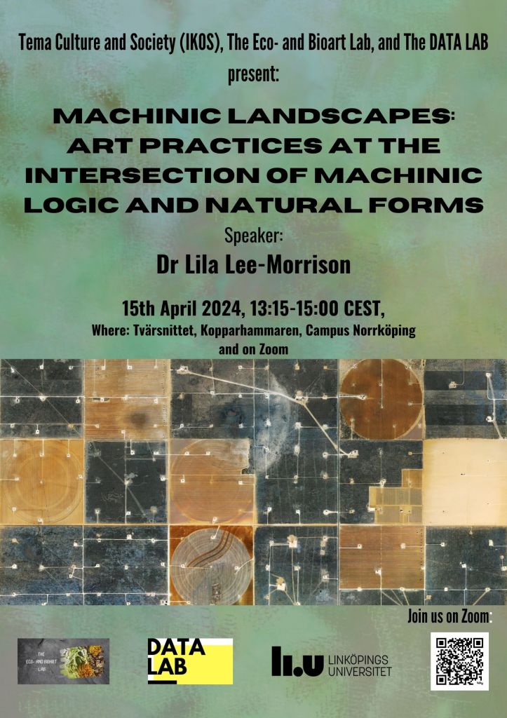 Thus, we would like to warmly welcome you all to join us for “Machinic landscapes: Art practices at the intersection of machinic logic and natural forms“, a hybrid seminar with Dr Lila Lee-Morrison (Lund University). The event is hosted by Tema Culture and Society (IKOS) in collaboration with The Eco- and Bioart Lab and The DATA LAB, Linköping University.